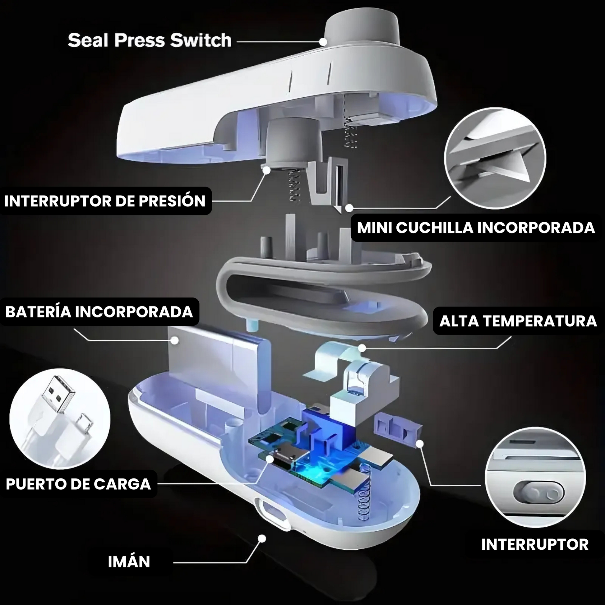 Muchos almacenan sus sobras en bolsas abiertas o recipientes que ocupan demasiado espacio y no garantizan la conservación adecuada. El resultado: alimentos contaminados, pérdida de frescura y más dinero tirado a la basura. Con este sellador, cada cierre es rápido, limpio y duradero, evitando esos problemas de una vez por todas.